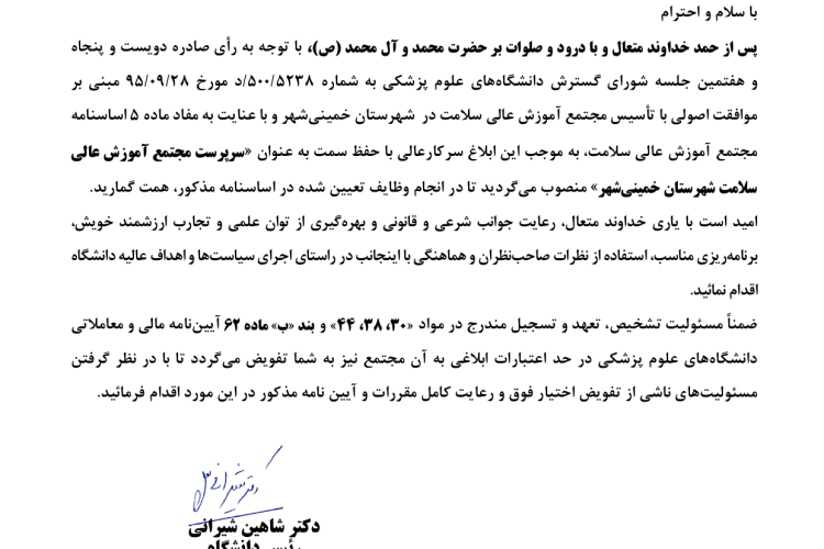 به گزارش واحد روابط عمومی در تاریخ چهارشنبه 1404/09/26 سرکار خانم دکتر براتی سرپرست جدید از مجتمع بازدید کردند . در این بازدید که با حضور آقای دکتر قادری معاون و جمعی از پرسنل مجتمع همراه بود ، مسائل و مشکلات مجتمع بررسی و راه کارهای مناسب اتخاذ گردید .