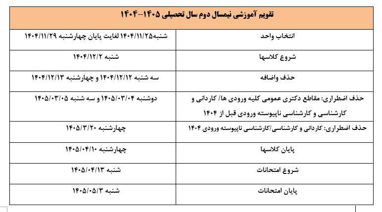 تقویم آموزشی دانشکده